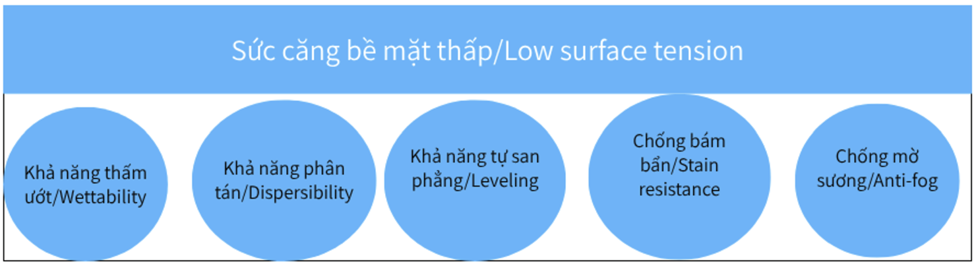 Cải thiện vượt trội về khả năng thấm ướt, phân tán và tự san phẳng