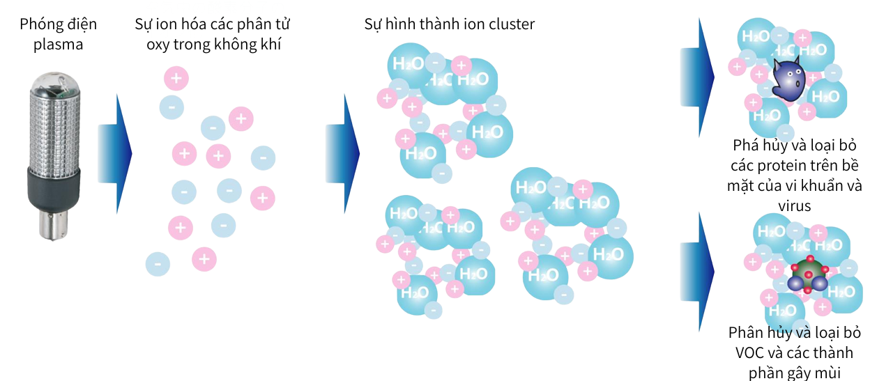 Venti tạo ra ion cluster trong không khí thông qua phóng điện plasma.
